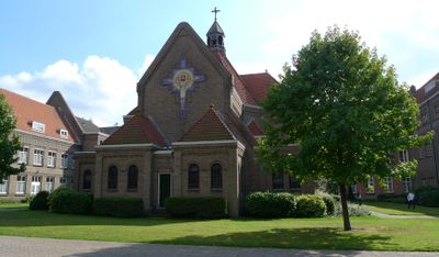 Eikenburg is een schoolgebouw in Eindhoven met drie vleugels rond een open binnenplaats, verbonden door een kapel aan de Aalsterweg 289. Het complex toont rode Belgische bakstenen, ingebouwde ramen en een kruisvormige kapel met koepel, versierd met geschilderde bijbelse taferelen boven een tegelbetimmering.