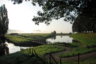 Het verdedigingssysteem integreert waterbeheertechnieken, waarbij militaire architectuur wordt gecombineerd met methoden om overstromingen in dit laaggelegen gebied te beheersen.