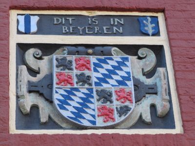 Pand genaamd: "Dit is in Beyeren" met wapensteen Beyeren, 87a tot zelfde woning behorend doch verbouwd, Rijksmonument op Herenstraat 87, 87a, 87b