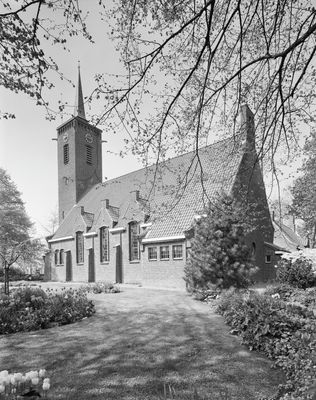Nederlands Hervormde kerk met fronttoren en aangebouwde consistorie