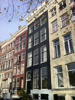 Pand met gevel onder rechte lijst met goede roedenverdeling op de verdiepingen
