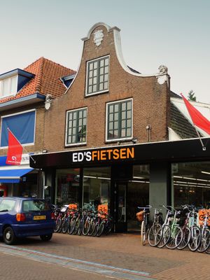 Fors pand met verdieping en twee zolders onder diep zadeldak tegen puntgevel