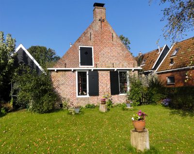 Visserswoning onder zadeldak tegen voortopgevel met moet van kleine rond gesloten lichtopening (Museum 't Fiskershúske)