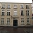 Huis met witgeschilderde lijstgevel waarin horizontale natuursteenbanden te onderscheiden zijn