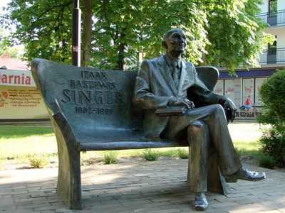 Ławeczka Isaaca Bashevisa Singera w Biłgoraju, Bronzen bankmonument in Biłgoraj, Polen.