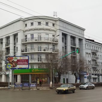 Architect Aleksandr Kurovsky voltooide dit woongebouw in 1937, tijdens de architectonische overgang van Constructivisme naar meer diverse stijlen.