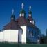 De Oekraïense Grieks-Orthodoxe Heilige Drie-eenheidskerk heeft drie metalen uivormige koepels bekroond met Russische driebalks kruisen.