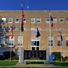 Het gebouw kijkt uit over de staatsgevangenis van Anamosa vanaf zijn locatie op een voormalig stadspark, met een originele vlaggenmast op het terrein.