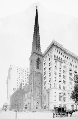Het neogotische gebouw, ontworpen door Richard M. Upjohn, had een toren van 63 meter hoog en bood plaats aan 1.200 mensen.