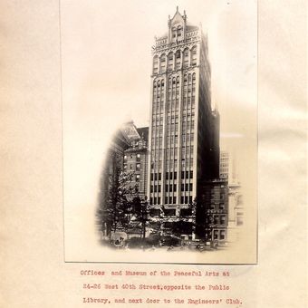 Het Museum van Vredevolle Kunsten presenteerde wetenschappelijke en industriële innovaties door middel van machinevoorstellingen en educatieve tentoonstellingen op 220 East 42nd Street.