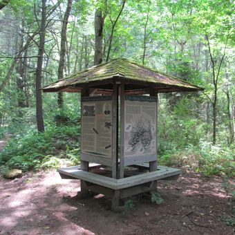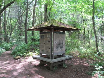 De Nashoba Brook potloodfabriek bevat overblijfselen van een 19e-eeuwse dam en mechanische onderdelen langs de beek.