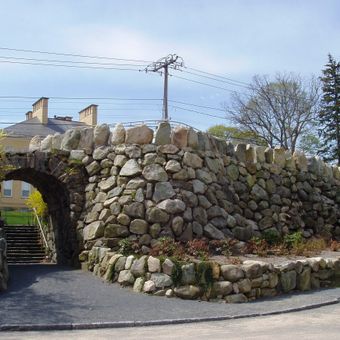The Rockery, ontworpen door Frederick Law Olmsted, staat als oorlogsmonument met natuurlijke steenformaties in het district.