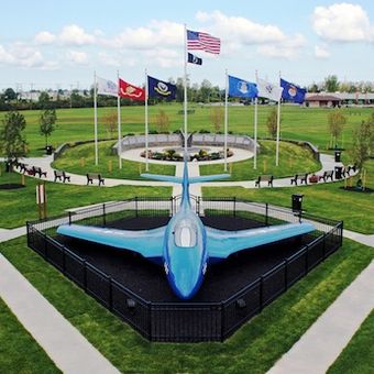 De locatie heeft een Grumman F9F-6P Cougar Naval vliegtuig uit de Koreaanse Oorlog, tentoongesteld sinds 1959, als militair erfgoedsymbool.