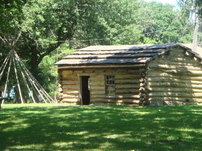 De Abbie Gardner Sharp Cabin, gebouwd van eikenstammen in 1856, markeert de plaats waar kolonistenfamilies hun nederzettingen vestigden.