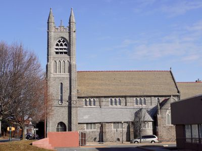 De kerkbouw weerspiegelt de architectonische patronen van religieuze gebouwen uit de 19e eeuw, met stenen metselwerk en gotische elementen.
