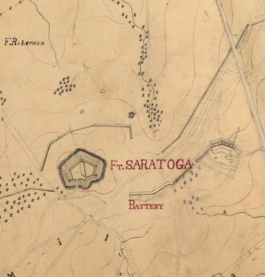 Fort Saratoga bevond zich tussen Fort Bunker Hill en Fort Thayer, 56 meter boven zeeniveau met een omtrek van 140 meter.