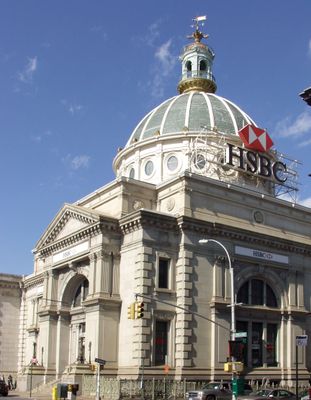 Williamsburgh Savings Bank Building, Neoclassicistisch bankgebouw bij Broadway en Driggs Avenue, Brooklyn, Verenigde Staten