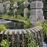 De stenen muren van de moestuin strekken zich uit over drie zijden en creëren een besloten ruimte voor het kweken van verse producten en sierplanten.