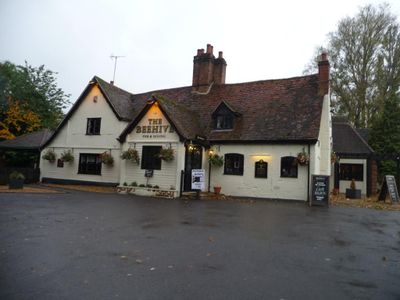 The Beehive Public House staat met witte muren en traditionele architectonische elementen aan Beehive Lane, met behoud van zijn structurele karakter uit de zeventiende eeuw.