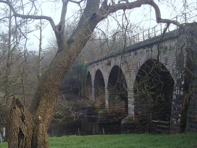 Railway viaduct, embankment and overbridge to the east of Church Farm, Grade II listed bridge in Rowsley, Derbyshire Dales, Derbyshire, DE4