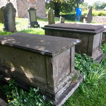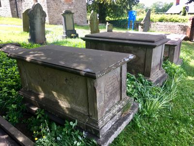 Group of three Moses family chest tombs in churchyard of St James, Rudry