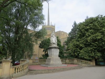Railings, Piers, Lampholders And Statue At East End Of Cathedral Churchyard