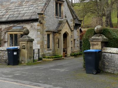 Entrance gate piers and attached walls at East and West Lodges to Holme Hall, Grade II listed building in Bakewell, Derbyshire Dales, Derbyshire, DE45