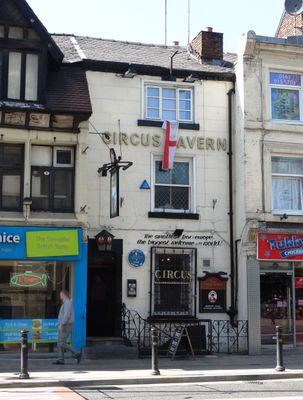 De Circus Tavern bestaat uit twee kamers met een kwadrantvormige bar die traditionele vatbieren en John Smith's Smooth serveert.