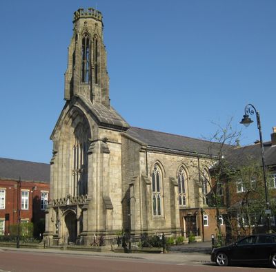 De Sint-Mariakerk staat aan Manchester Road met neogotische kenmerken, waaronder spitsbogen en hoge torenspitsen.