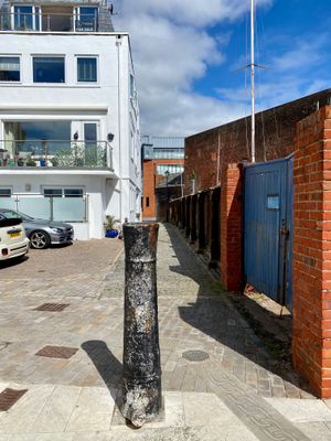 Bollard On North Side Of Round Tower, bollard in City of Portsmouth, Hampshire, UK