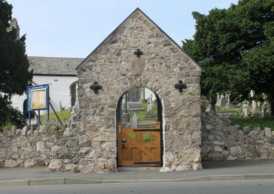 Lychgate of Church of St Trillo, Grade II listed building in Conwy County Borough. The main gateway into the churchyard