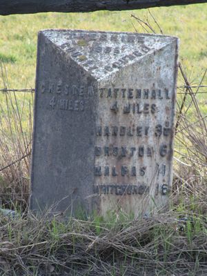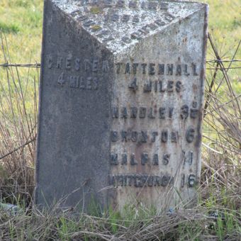 Milepost, Hatton Heath, S of Lodge Farm and Power Movers