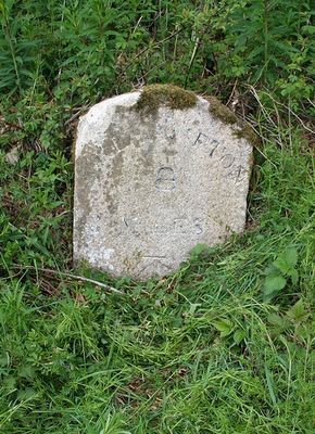 Milestone, by a wood W of Combebow, 10m W of entrance through spinney edge