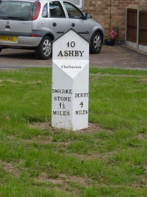 Milepost, Derby Road, Chellaston, opp. No 74, N of jct with Maple Drive mini roundabout