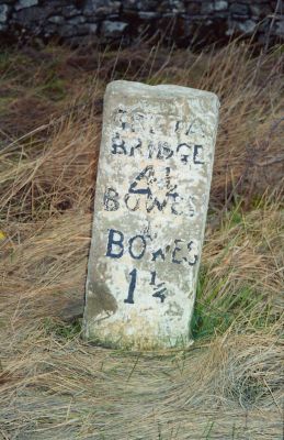 Milestone, ExYN Huland Quarry, E of entrance, milestone in Bowes, Teesdale, UK