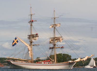 Gebouwd in 2005, deze replica op ware grootte van een 18e-eeuwse Zweedse marine brik behoudt traditionele zeilmethoden.