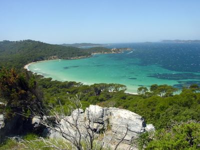 Notre-Dame Beach, Mediterraan strand in Porquerolles, Frankrijk.