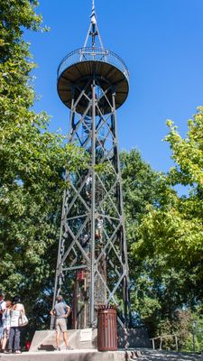 Bezoekers bereiken de toren via de Saint-Paul loopbrug, die zich 15 meter boven de Allée Pasteur uitstrekt naar het platform.