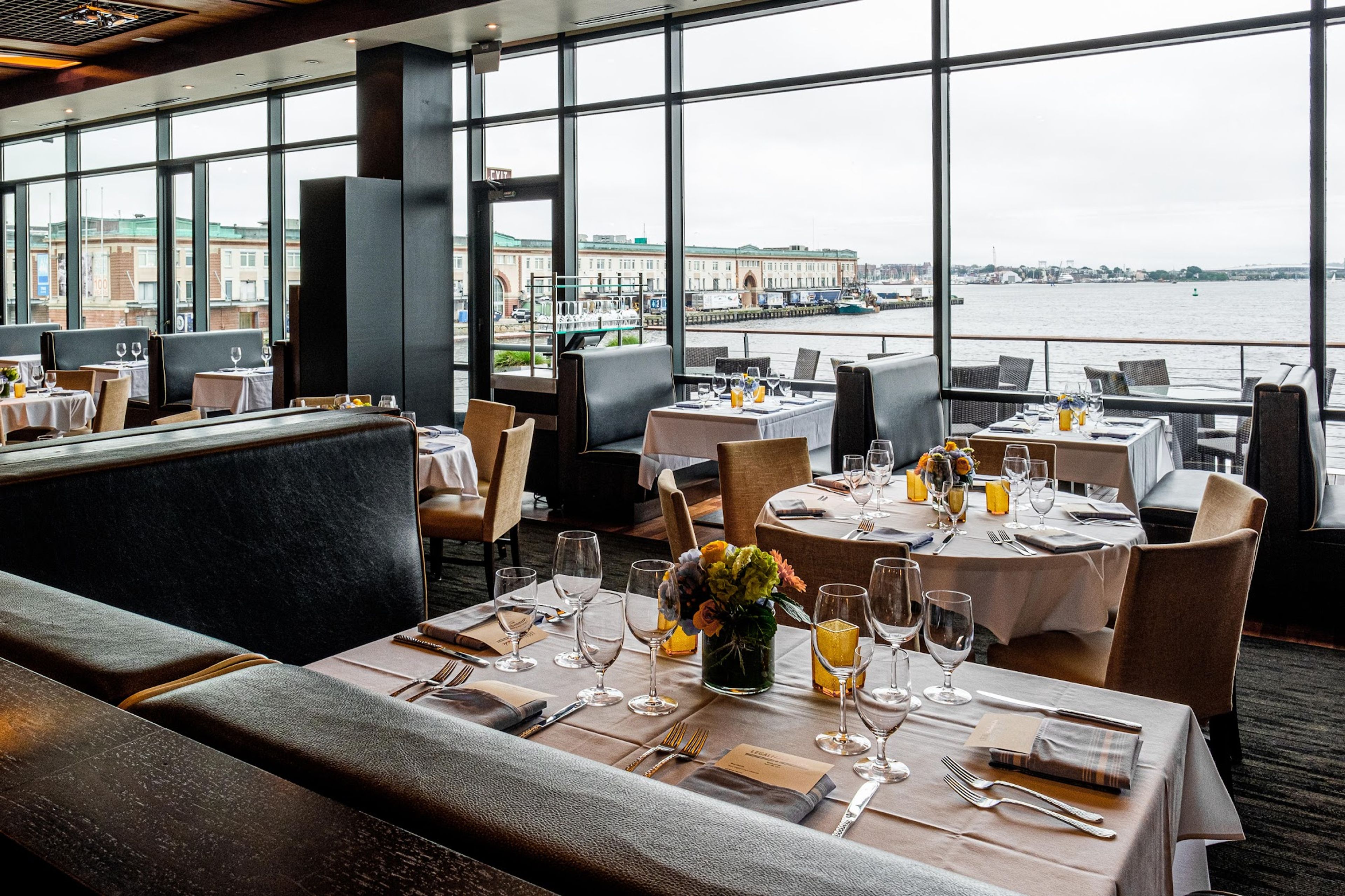 Legal Sea Foods Harborside strekt zich uit over drie verdiepingen, met 20,000 vierkante voet aan eetruimtes met uitzicht op de haven van Boston.