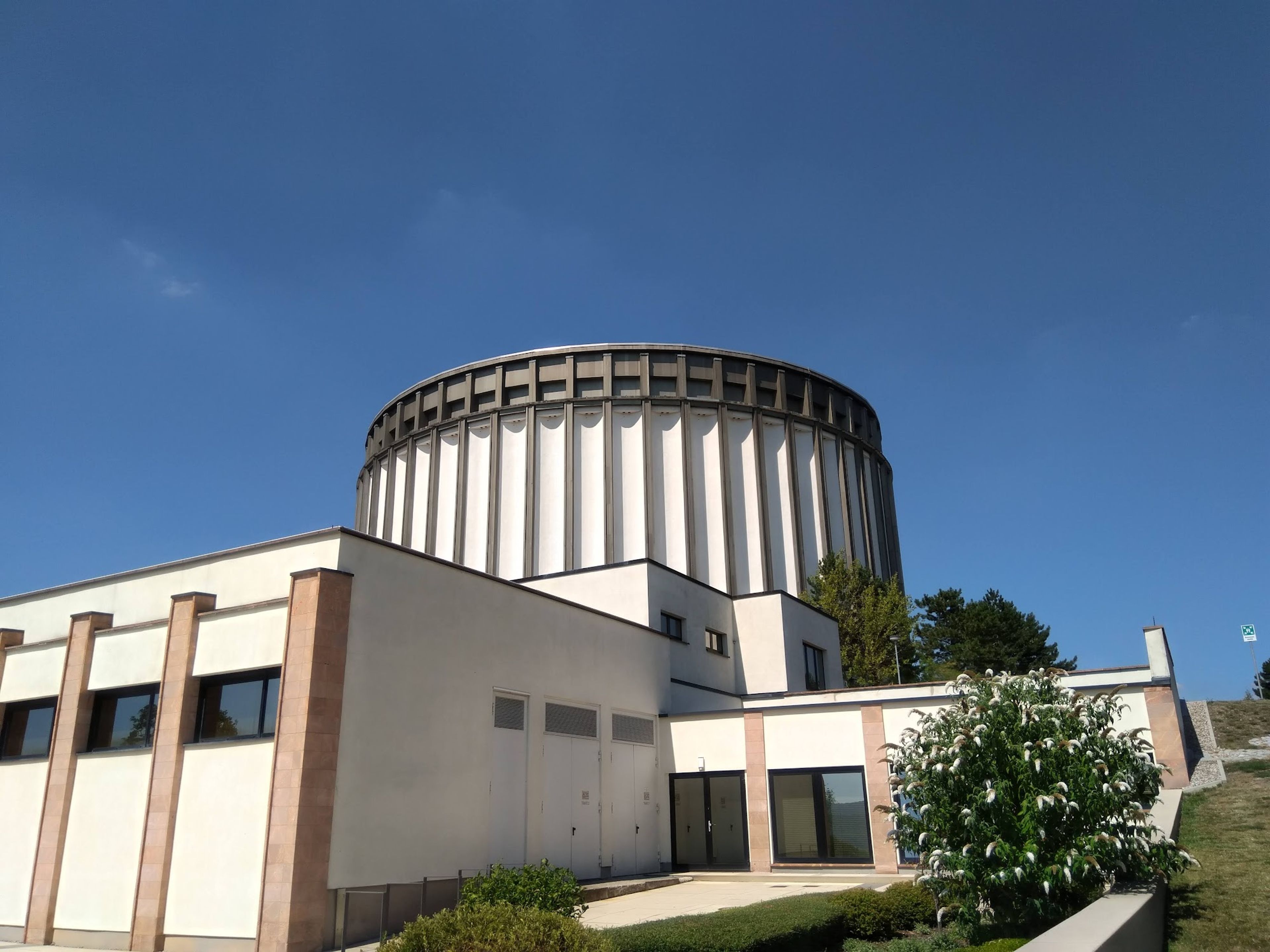De cilindrische structuur bevat tentoonstellingen die Duitse sociale bewegingen verkennen door artistieke representatie, met elementen uit middeleeuwse en renaissance tradities.