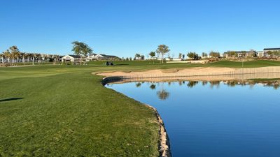 De Sterling Grove golfbaan biedt een 18-holes parcours met door bosjes omzoomde fairways en waterelementen tegen de achtergrond van de White Tank Mountains.