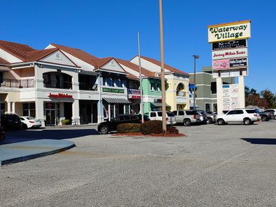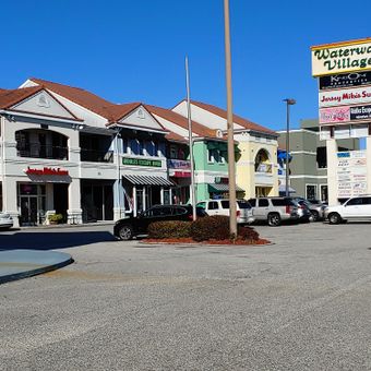 Het Waterway Village Shopping Center combineert restaurants, schoonheidssalons en winkels verspreid over meerdere gebouwen in het commerciële district.