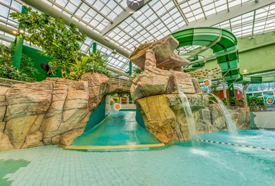 Aqua Mundo is een groot overdekt waterpark met verschillende zwembaden en glijbanen voor alle leeftijdsgroepen. De faciliteit beschikt over een golfbad, een ondiep kinderbad, meerdere glijbanen van verschillende afmetingen, jacuzzis, whirlpools en verwarmde buitenzwembaden die het hele jaar open zijn.