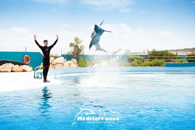 De educatieve presentaties tonen Mediterrane zeebeschermingsmethoden en demonstreren de intelligentie van dolfijnen door gespecialiseerde trainingstechnieken.