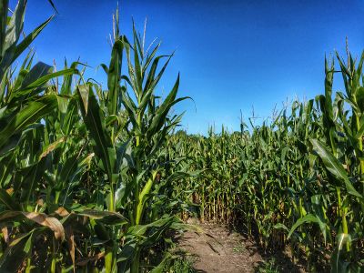 Pop Corn Labyrinthe biedt een groot maïsdoolhof met houten spellen verspreid over twee kilometer aan paden, kruisingen en verschillende routes.