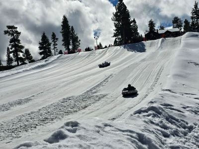Het buisglijden trekt families uit Zuid-Californië aan die winterrecreatie zoeken zonder specifieke ski- of snowboardvaardigheden.