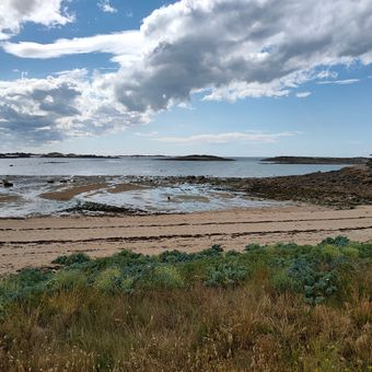 Het uitgestrekte zandstrand strekt zich uit langs de Bretonse kust, met granieten formaties en natuurlijke getijdenpoelen langs de hele kustlijn.