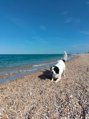 Spiaggia Libera con accesso consentito per animali domestici, Openbaar strand toegankelijk voor huisdieren in Porto Recanati, Italië.