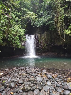 Het pad naar de waterval loopt over ongelij terrein met natte en gladde rotsen, dus stevig schoeisel en voorzichtige stappen zijn essentieel. Het droge seizoen biedt gemakkelijker toegang en stabielere loopomstandigheden dan de regenmaanden.
