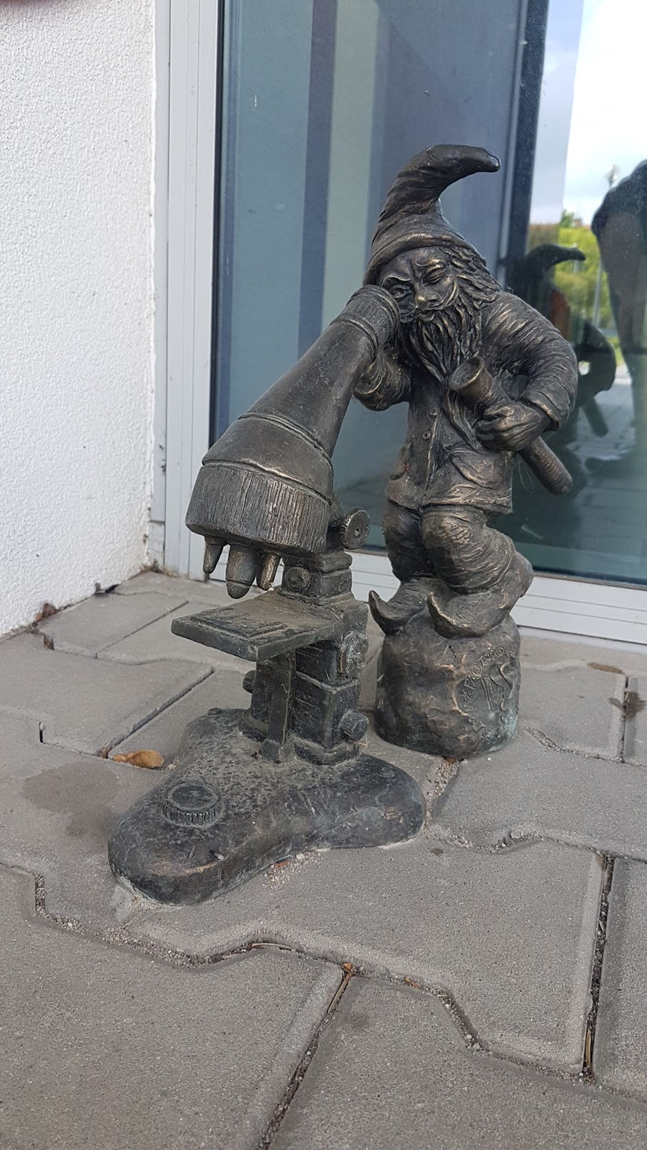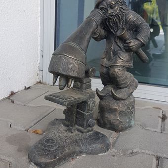 Diagnozjusz, Bronzen dwergenbeeld bij de Faculteit Farmacie in Wrocław, Polen.